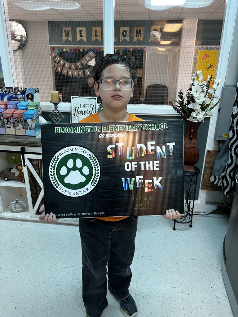 This week's Student of the Week for Bloomington Elementary is Felix Baladez!! Felix was nominated by Ms. Rodriguez who says, "Felix is hardworking, kind hearted to all his peers, and is always excited about learning!"
